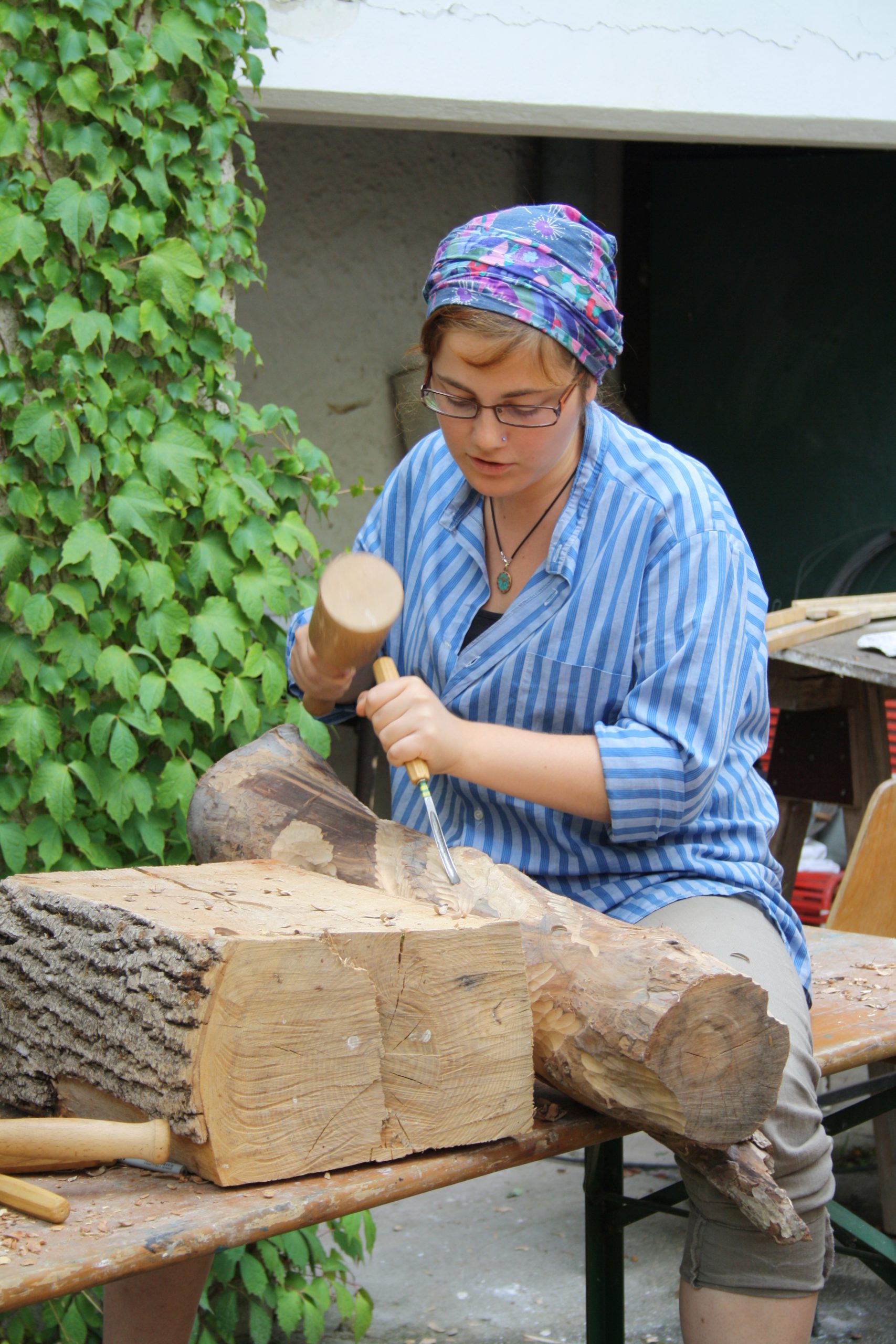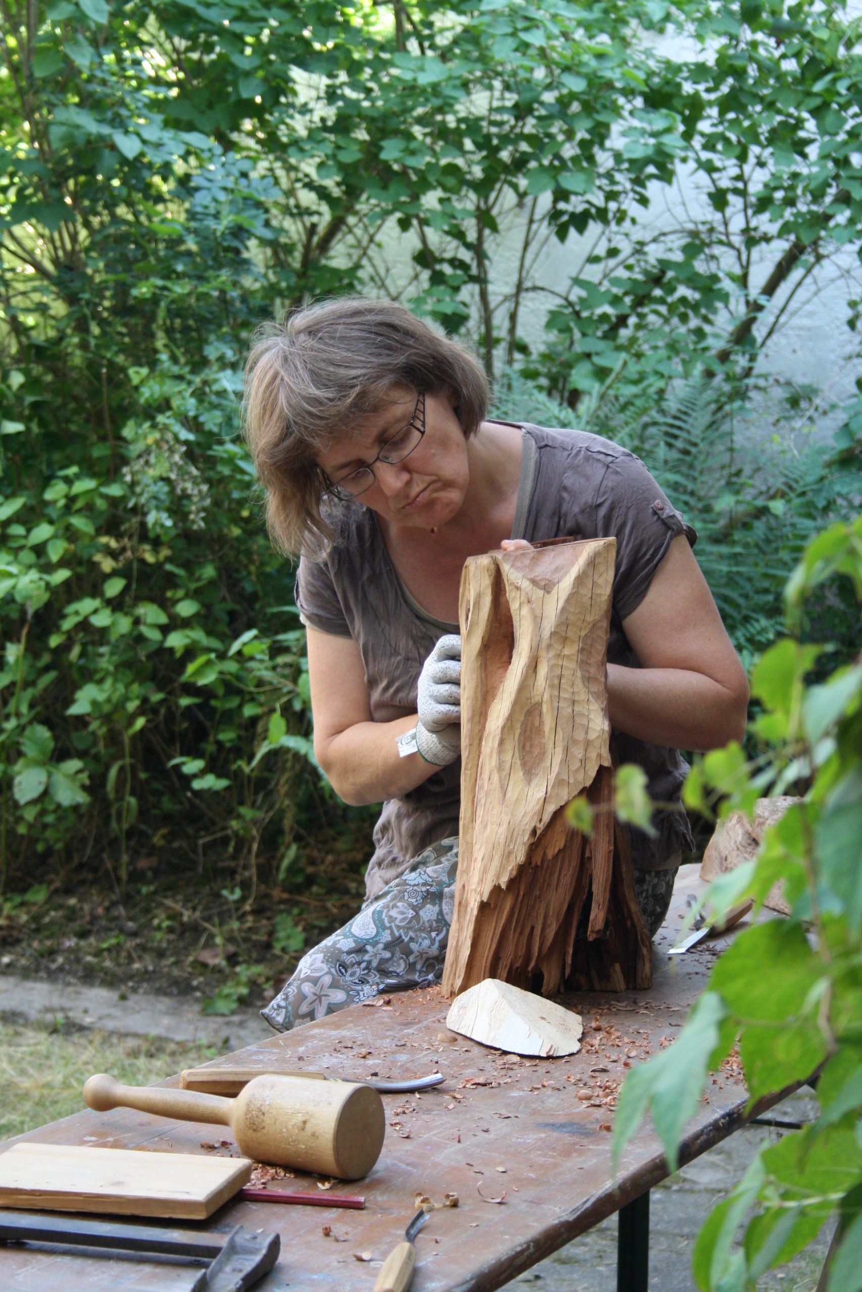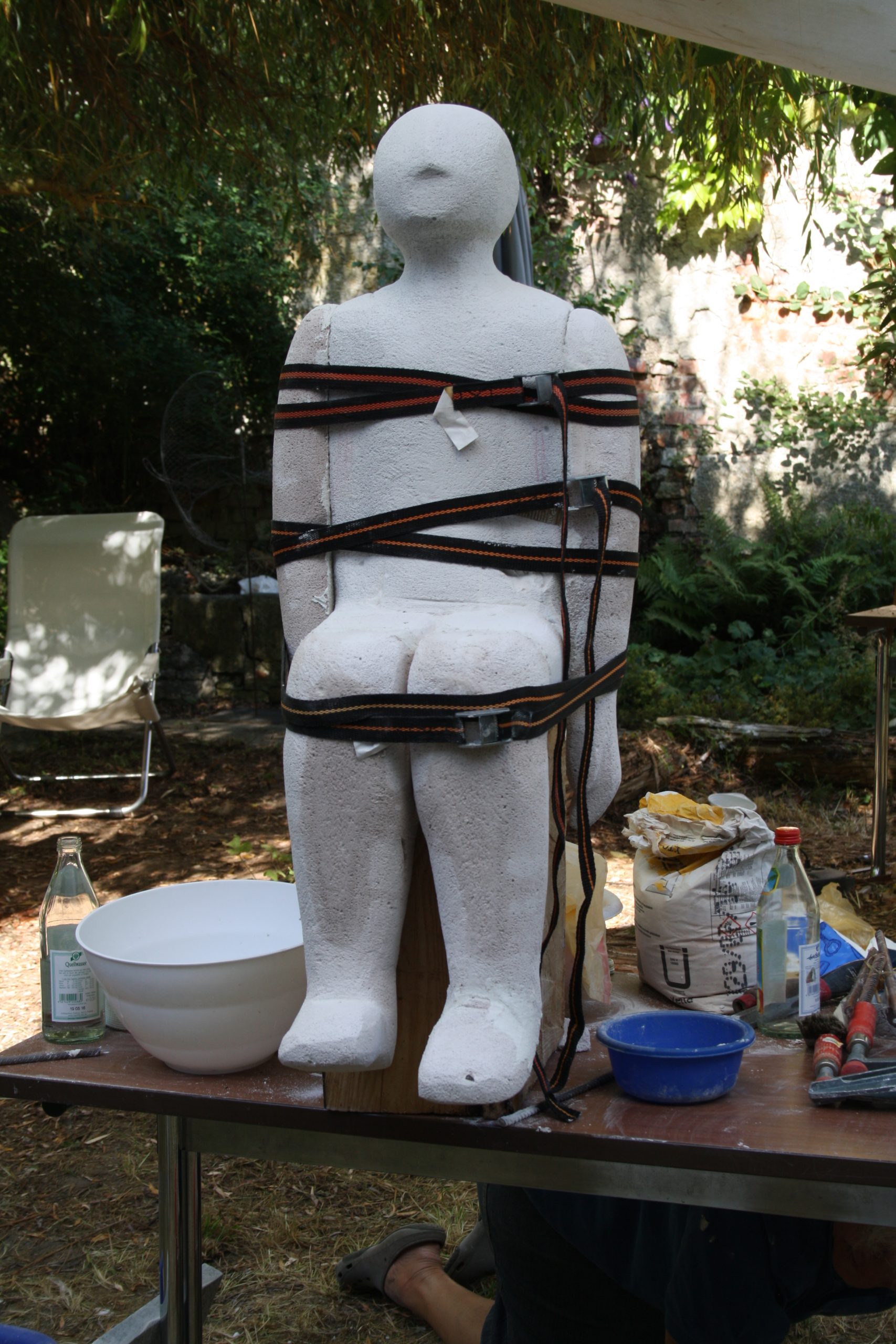 The Schloßökonimie was pretty much the same as it had previously been. The biggest sad difference was that the brewery was locked up for health & safety reasons. We discovered that we would be working in the garden of the Forester’s cottage. However, making sculpture outdoors under natural light gave us the best working environment. There was space for us inside if it rained. Luckily, we were blessed with the best summer weather we could have ever wished for.